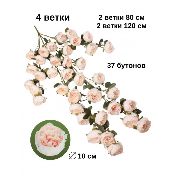 Цветы искуственные Пионы каскадные (37 штук, 120 см, цветок 10 см) нежно розовый контр. середина 265899