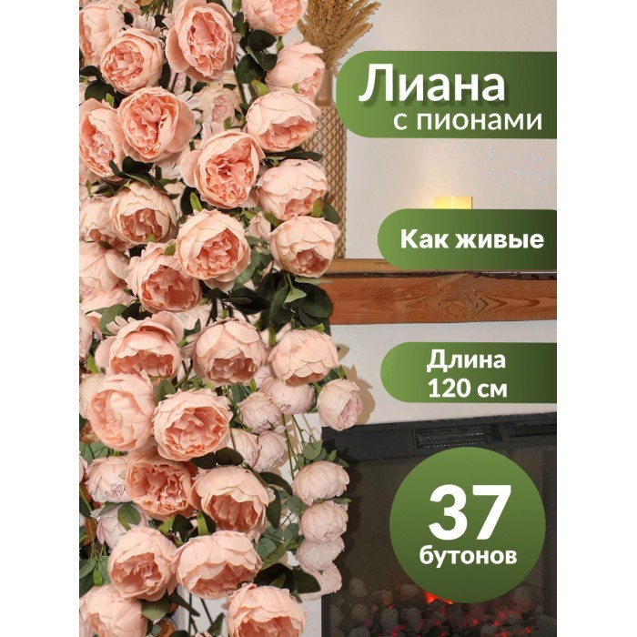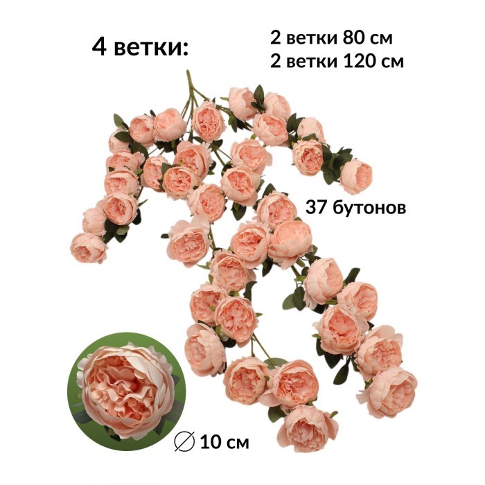 Цветы искуственные Пионы каскадные (37 штук, 120 см, цветок 10 см) розовый 265451
