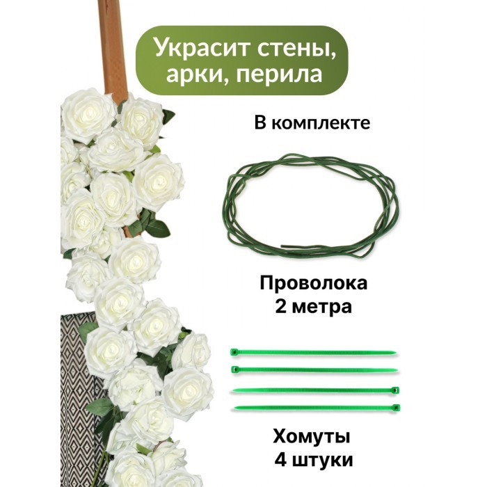 Цветы искуственные Розы каскадные (37 штук, 120 см, цветок 10 см) белый 265453