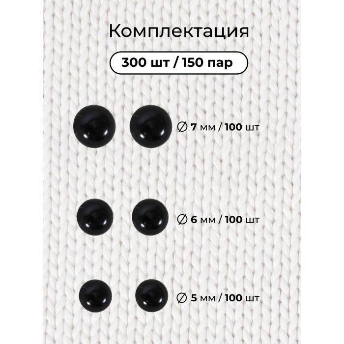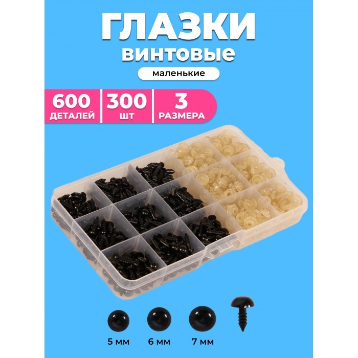 Глазки винтовые черные с фиксатором (300 штук-5мм, 6мм, 7мм/300 фиксаторов) 265559