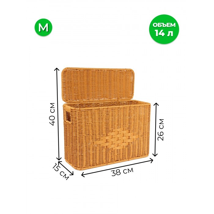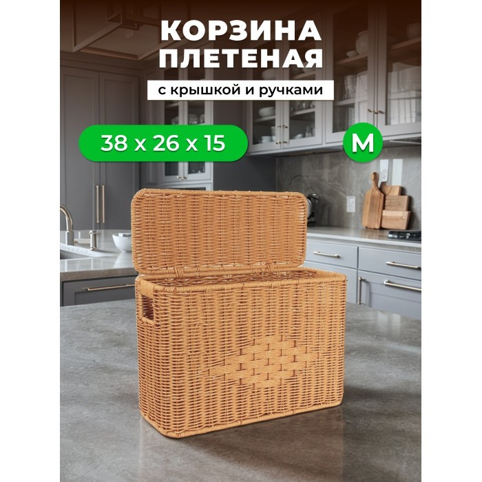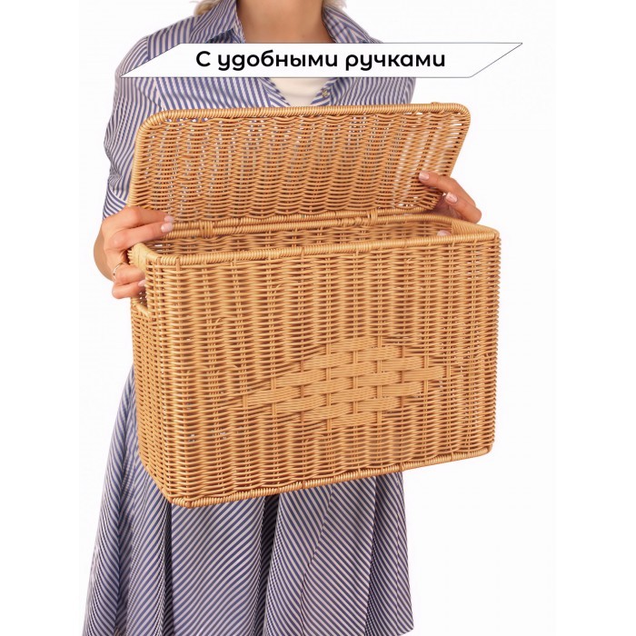 Корзина плетеная с/крыш Узкая M 380*260*150mpl-fbo" иск/ротанг, песочный 265674