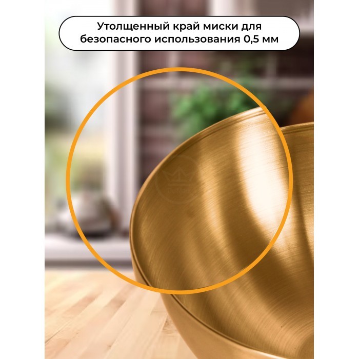 Набор Мисок из нержавеющей стали 5пред (15см, 20см, 25см-по 1шт+блюдце 14см - 2шт) золото 262427