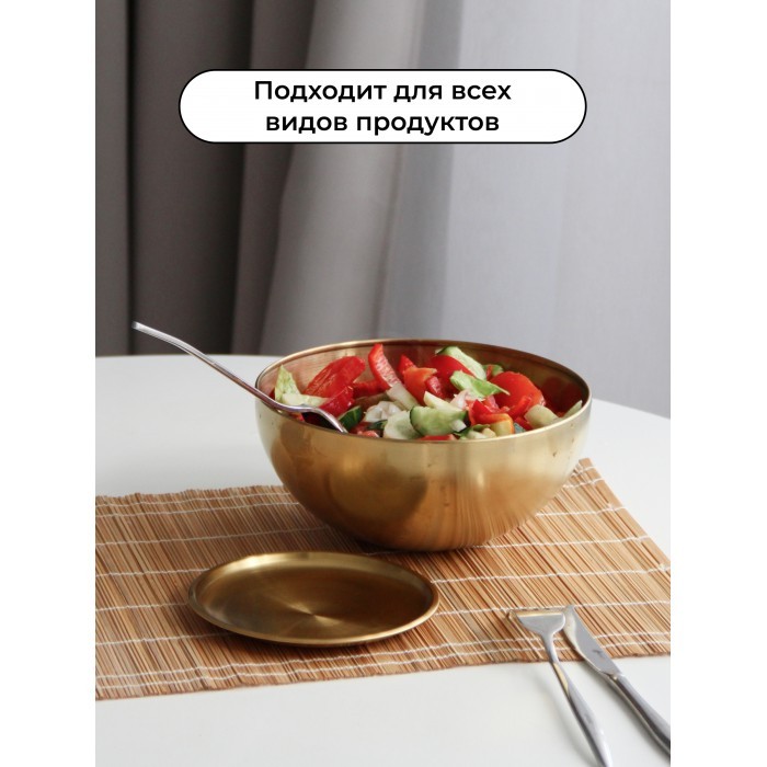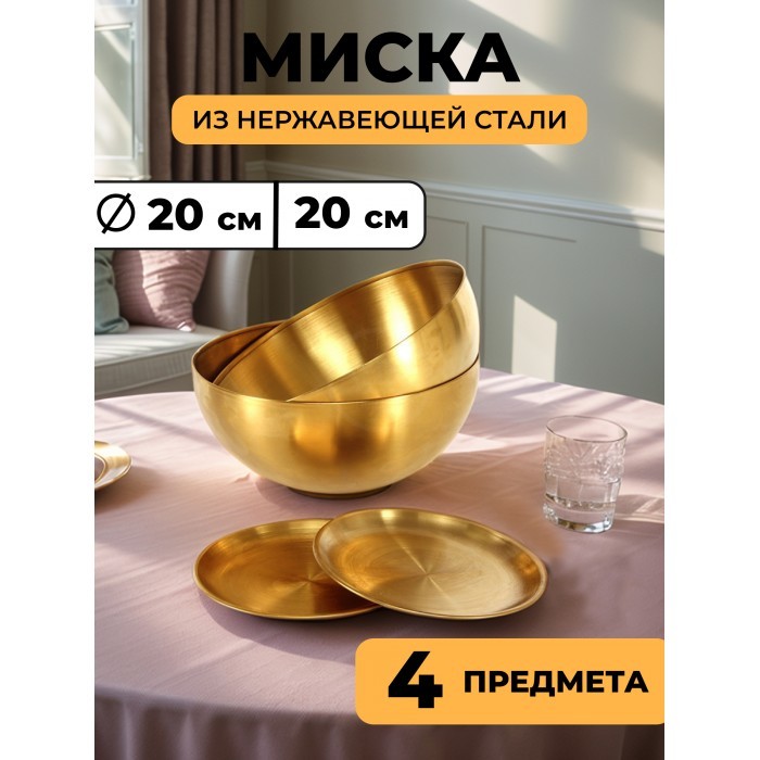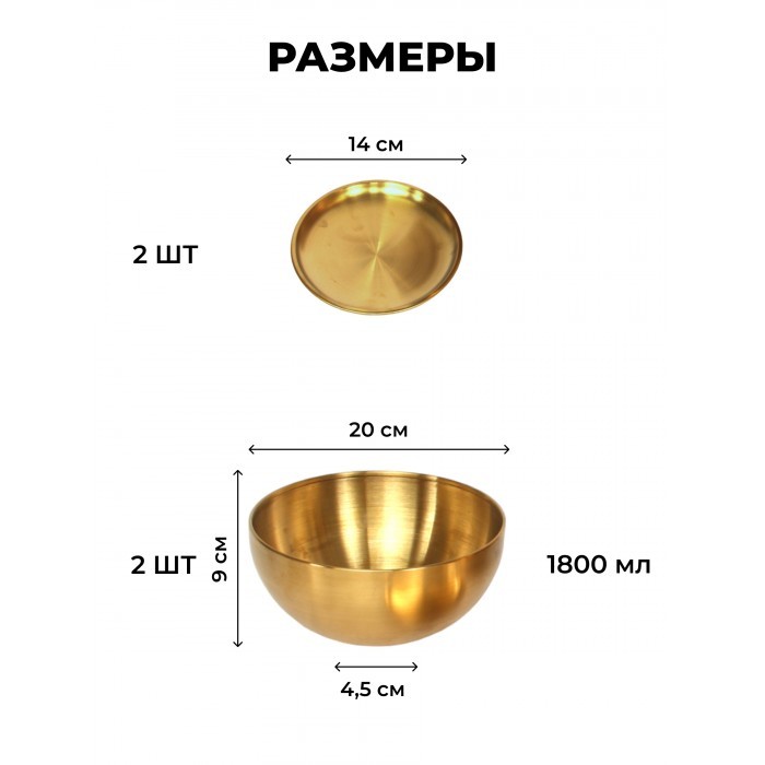Набор Мисок из нержавеющей стали 2шт (20см-2шт+блюдце 14 см-2шт) золото 262429