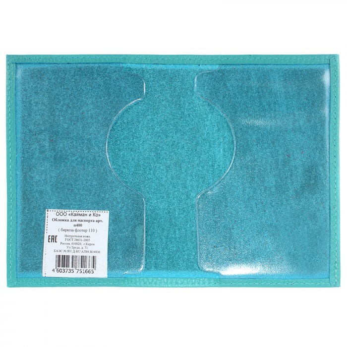 Обложка для паспорта Croco-П-400 натуральная кожа бирюза флотер (110) 206891