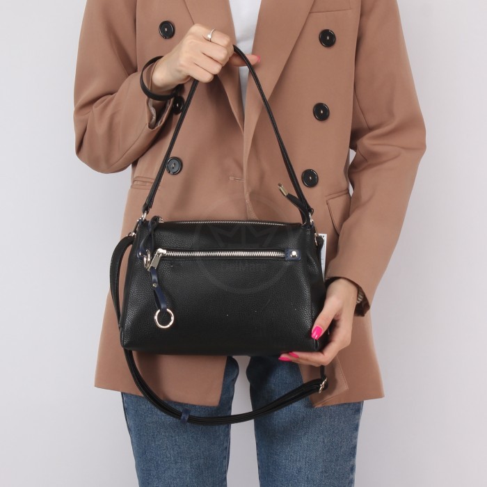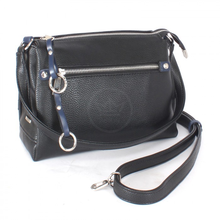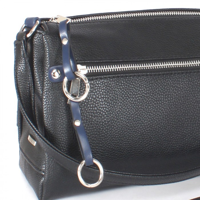 Сумка женская искусственная кожа ADEL-201/1в/ММ, 3отд, плечевой ремень, (УЦЕНКА/ДЕФЕКТ: порез на дне) черный/синий 240271