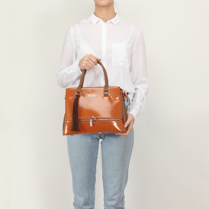 Сумка женская искусственная кожа ADEL-199/ММ/1в, 3отд, плечевой ремень, (УЦЕНКА/ДЕФЕКТ: царапина на дне, небольшие порезы) рыжий/корич 231131