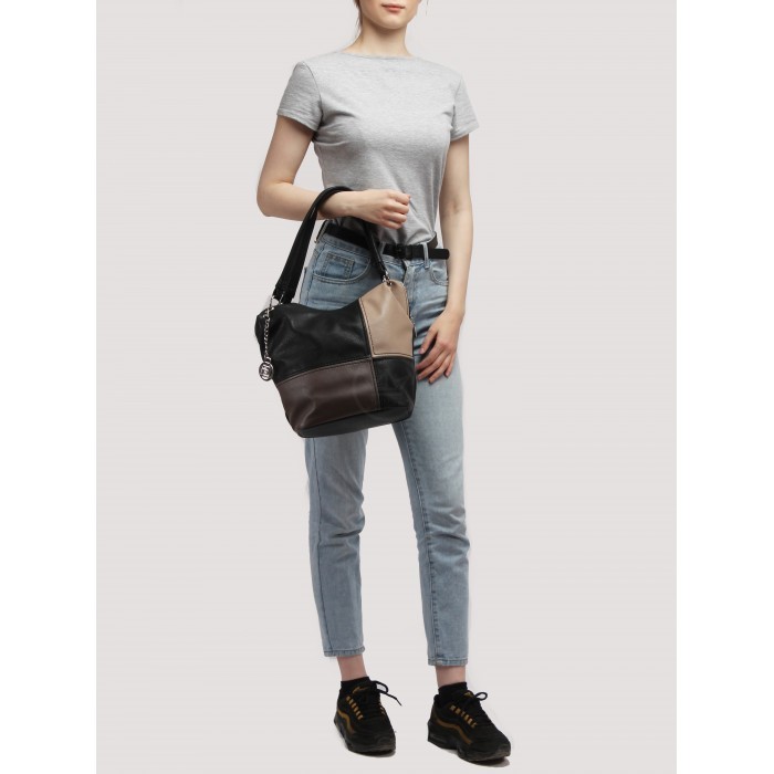 Сумка женская искусственная кожа GR-1033; 1отд+карм/пер, (УЦЕНКА/ДЕФЕКТ: мятая) черный/кофе/беж 221718