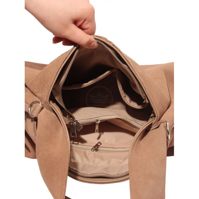 Сумка женская натуральная замша ADEL-281-811 (отделка ИСК/КОЖА), 1отд, плечевой ремень, бежевый mpl 266334
